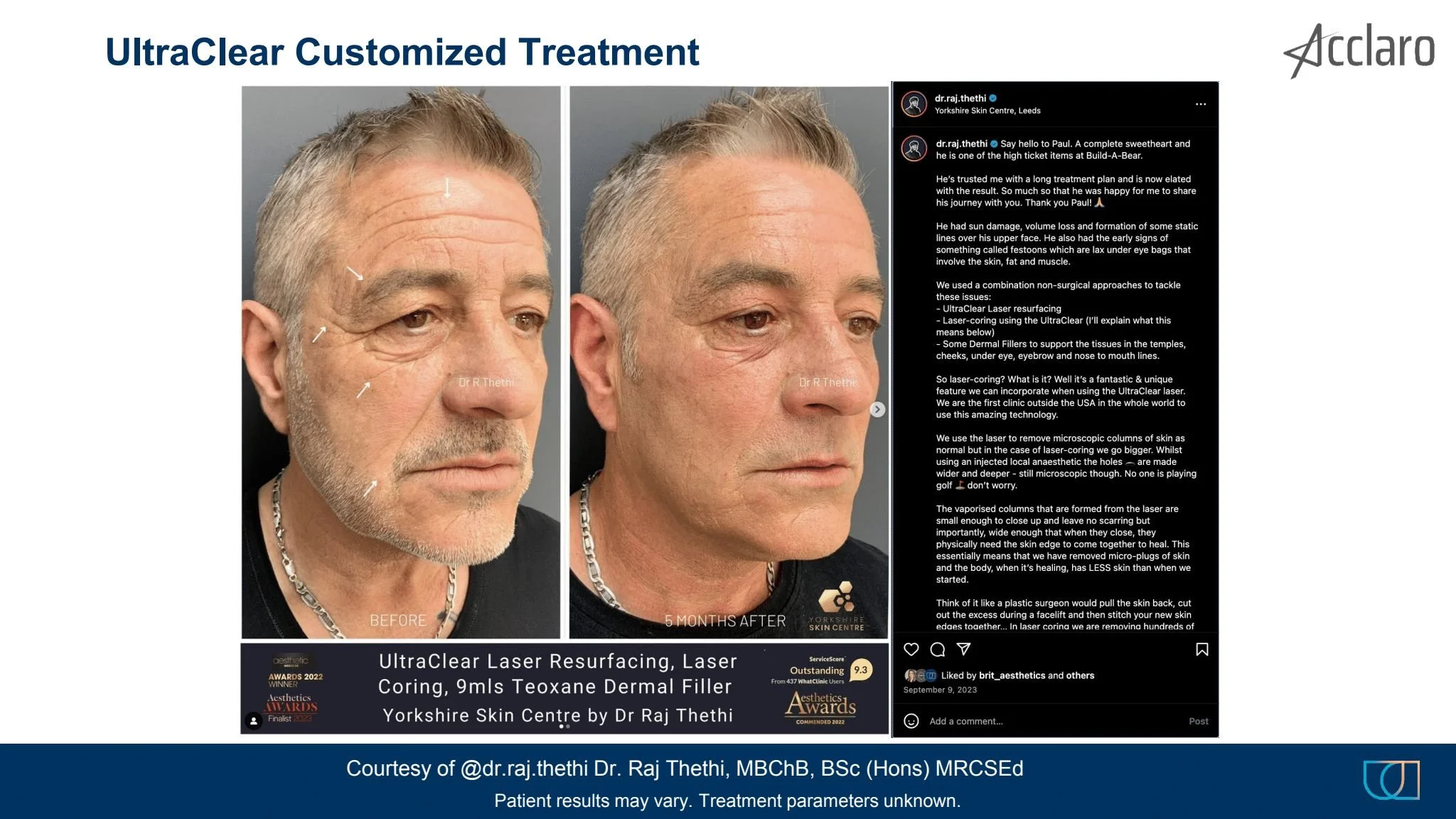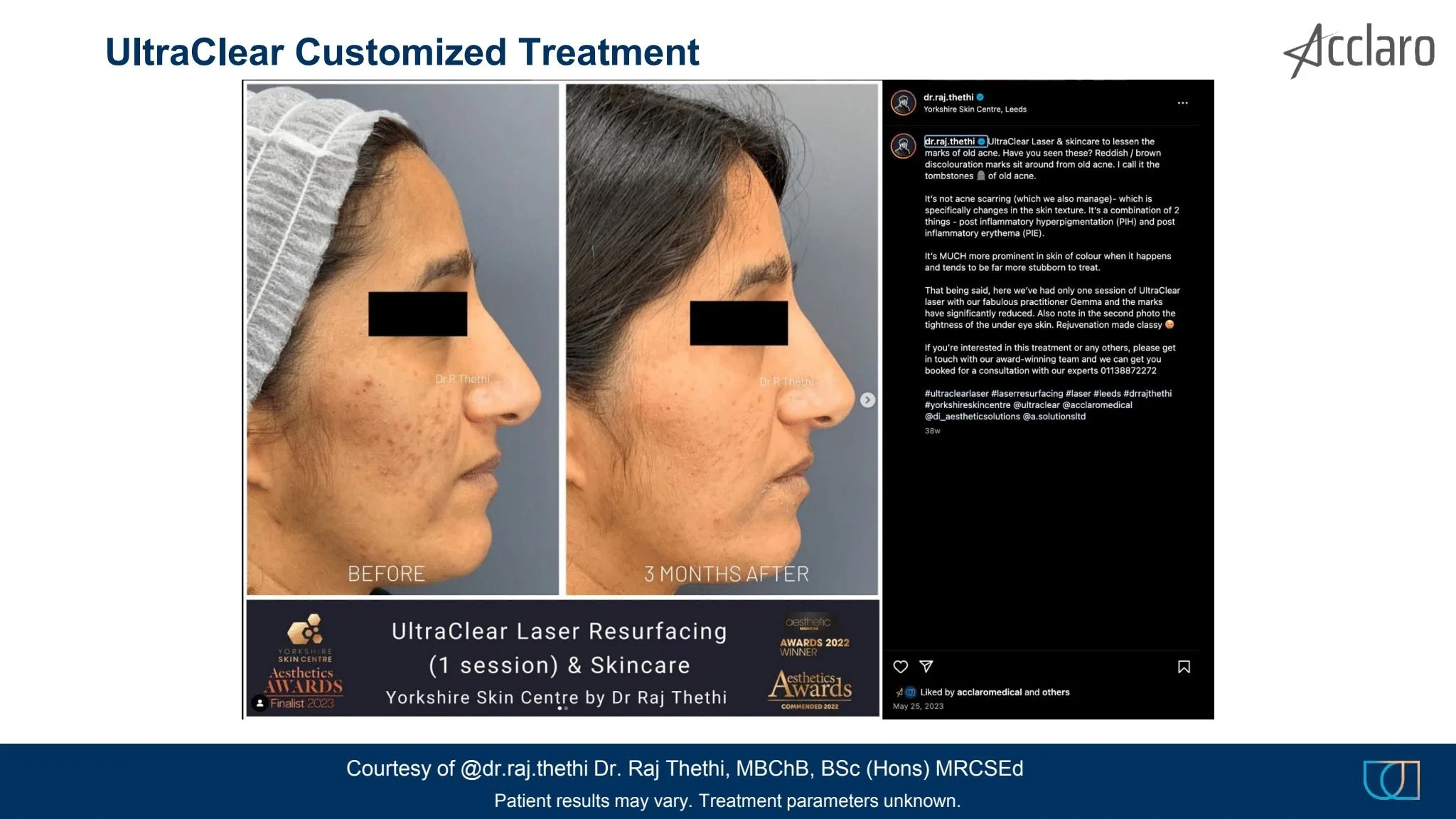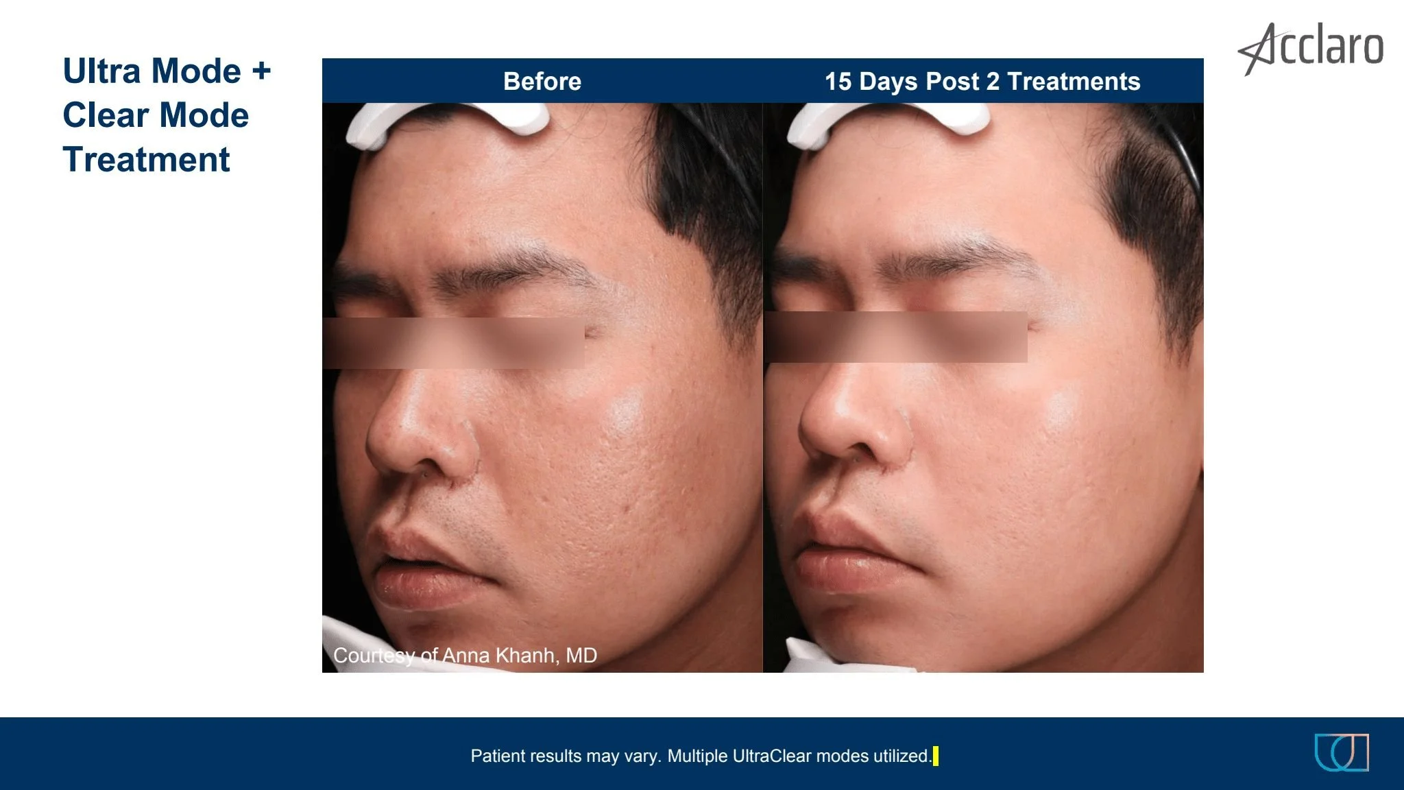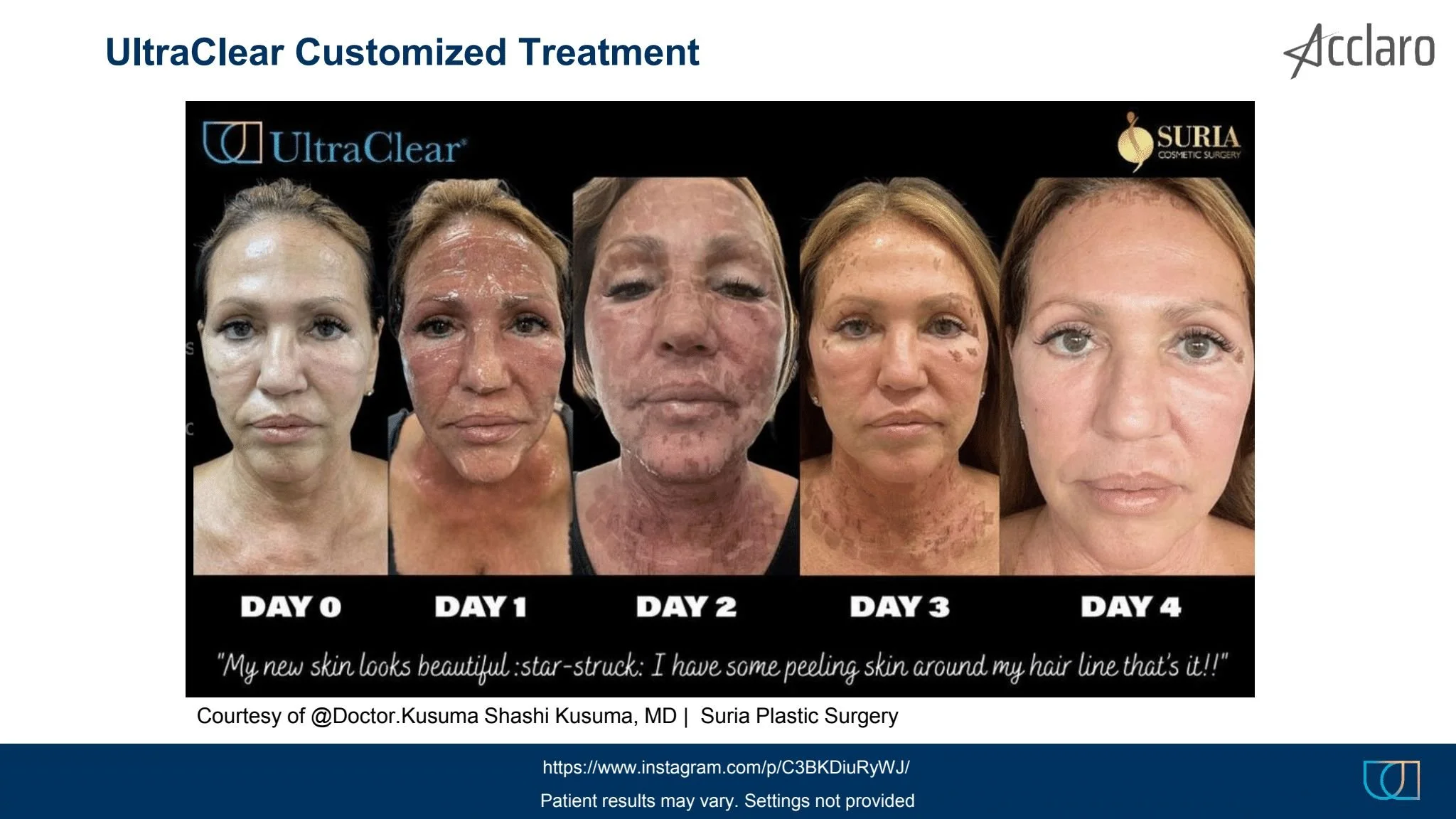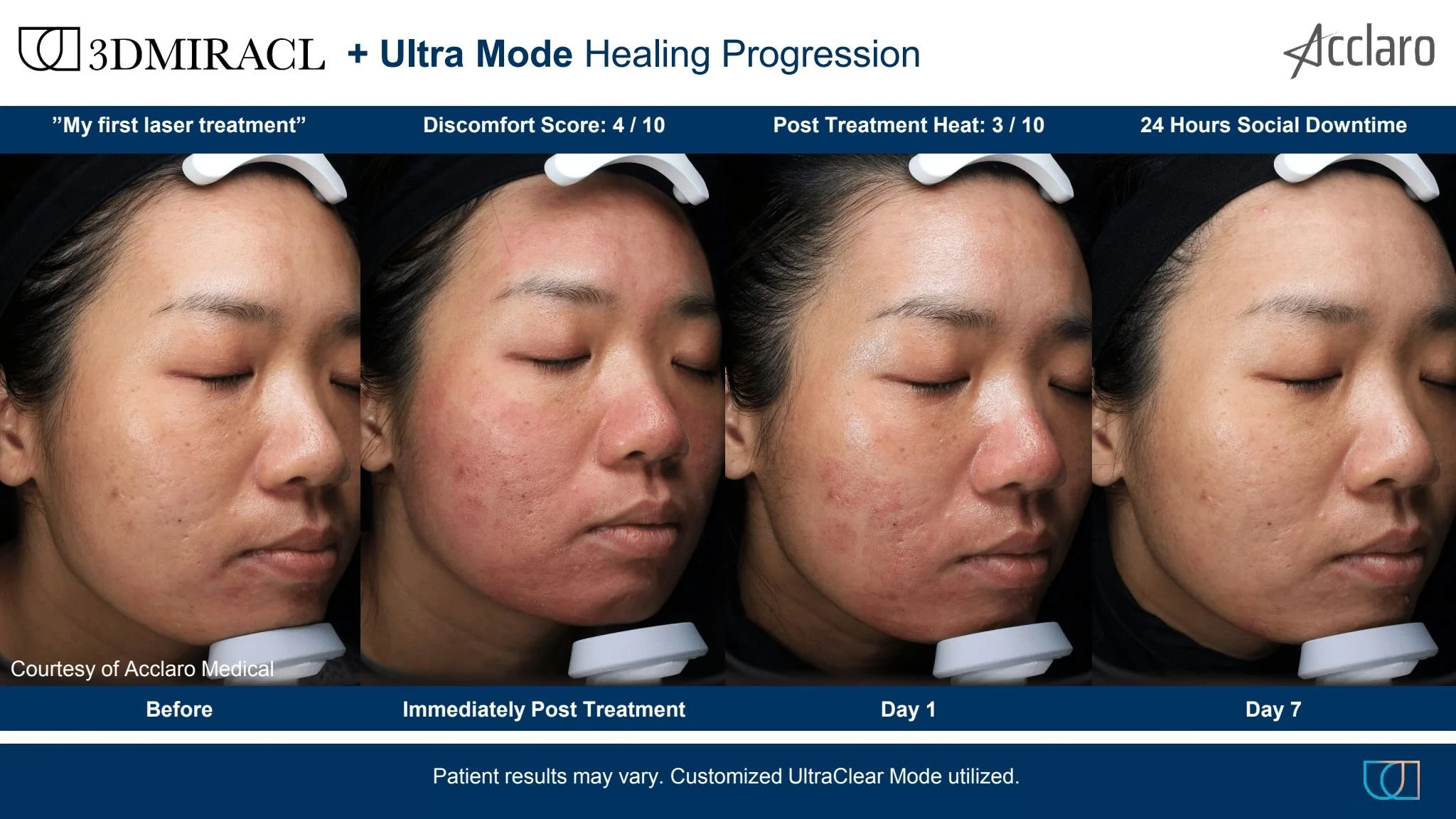 These images are provided to illustrate the types of changes UltraClear® can achieve. Individual results and downtime will vary based on your skin, treatment settings and adherence to aftercare.
