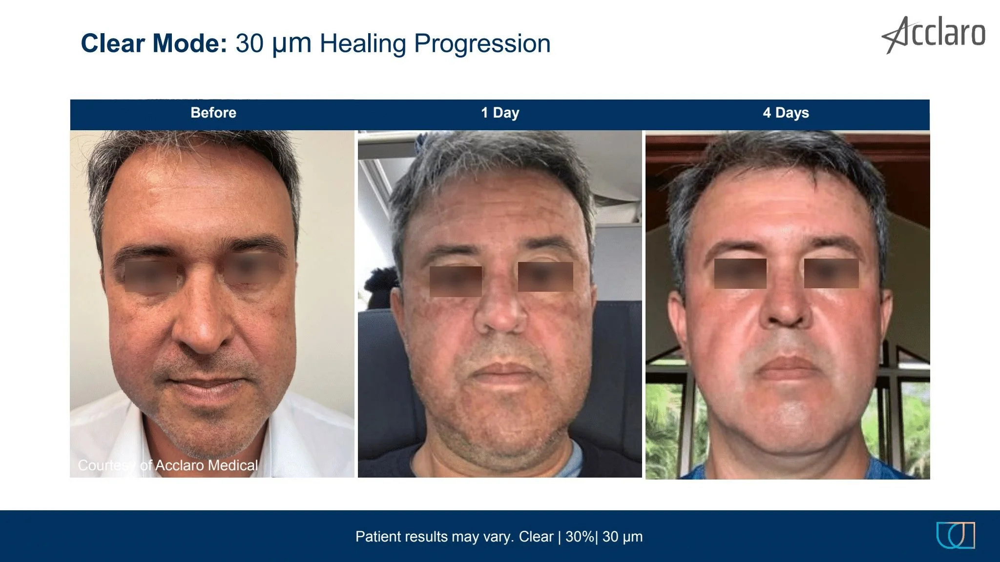 Downtime: mild redness for 24–48 hours; most people return to work the next day, although slightly stronger settings can occasionally require one to two days of social downtime