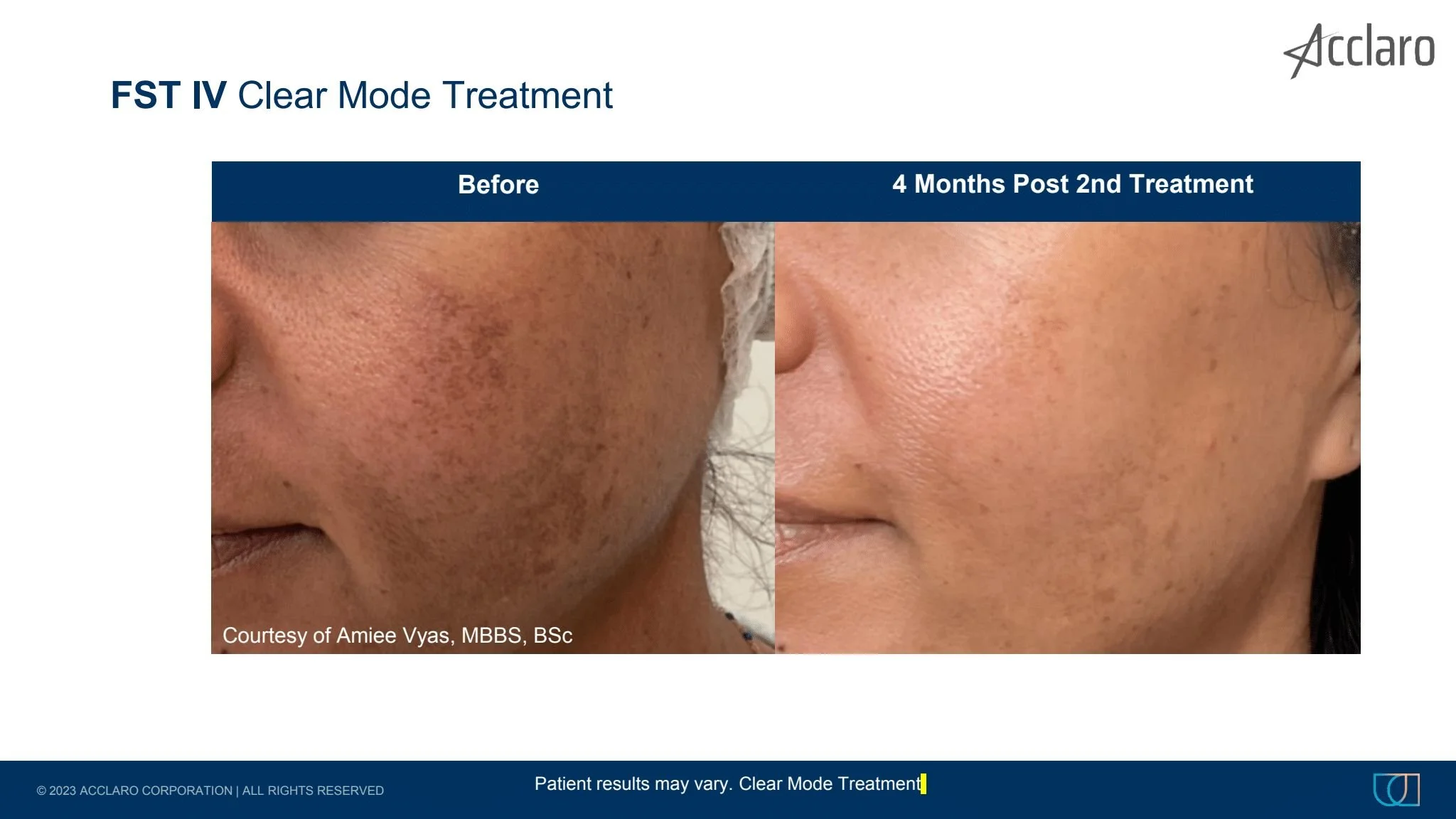 Results: progressive improvement over weeks to months as collagen remodels; often only a small number of sessions are needed